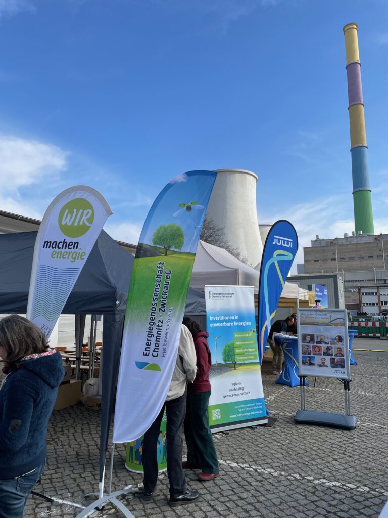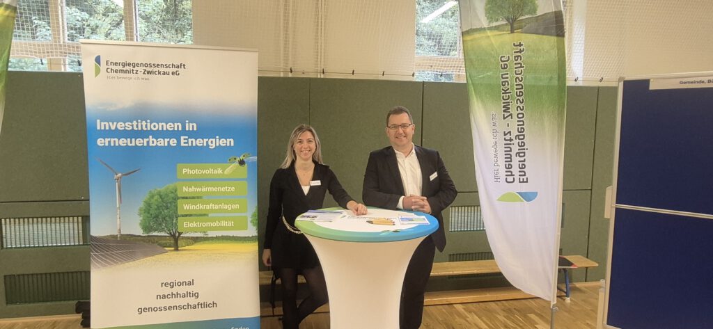 Von unserer Seite waren Tobias Schulze und Scully Helbig vor Ort und sprachen über Mitgliedschaft und Beiteiligungsmöglichkeiten bei der Energiegenossenschaft Chemnitz-Zwickau eG.